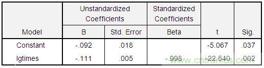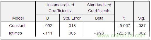lg(ratio) = -0.092 – 0.111*lg(times),通過(guò)t檢驗(yàn),此方程關(guān)系非常顯著,如下表。