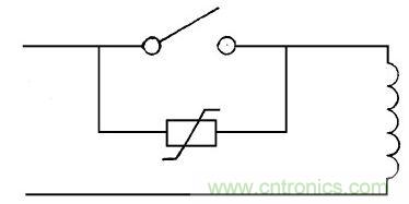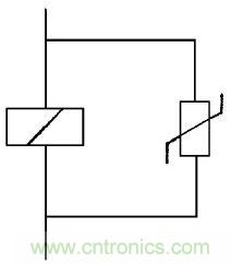 圖9中在繼電器、電磁鐵、磁力開關、電磁閥門的線圈兩端并接壓敏電阻, 能吸收線圈兩端存貯的能量, 延長線圈使用壽命, 防止頻繁開關產生噪音的輻射。