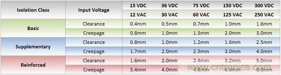 這就是為什么UL定義了三種不同的隔離等級,明確提出電氣間隙和爬電距離。電氣間隙是兩點之間的直線距離,爬電距離是沿著表面的路徑。要符合最低UL“基礎”等級,一個24VDC輸入電壓的轉換器,它的電氣間隙和爬電距離分別是0.5mm和1.0mm。要達到“補充”等級,這些值要翻倍達到1.0mm和2.0mm。要達到加強隔離的最高等級,上述的轉換器必須要滿足2.0mm和4.0mm的電氣間隙和爬電距離,這已是“基礎”等級的四倍了。