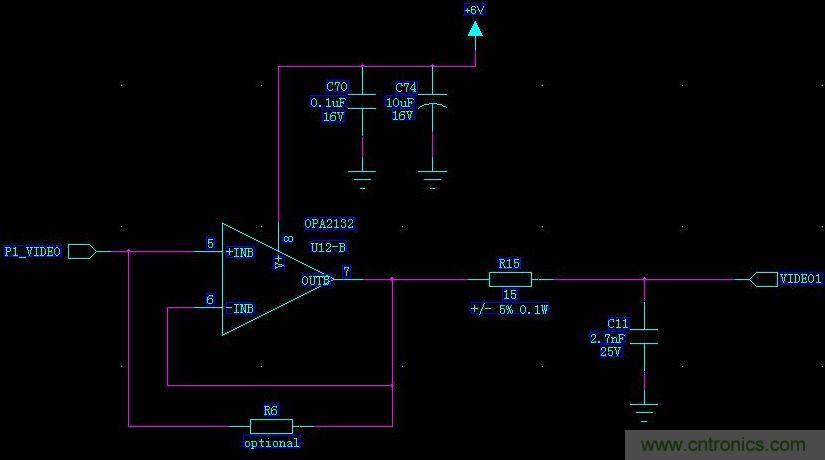 1、視頻信號里有大量的高頻信號成份,清晰度越高,信號的頻率也越高,而運放是有頻率帶寬的,高頻信號經過運放情況很復雜,再加上PCB走線的電感影響,很難用理想的模型進行分析,這個電阻應該是提升頻率響應用的,一般在幾百歐,甚至幾十歐,要靠實驗來確定的,K級應該作用很小,M級沒意義的。