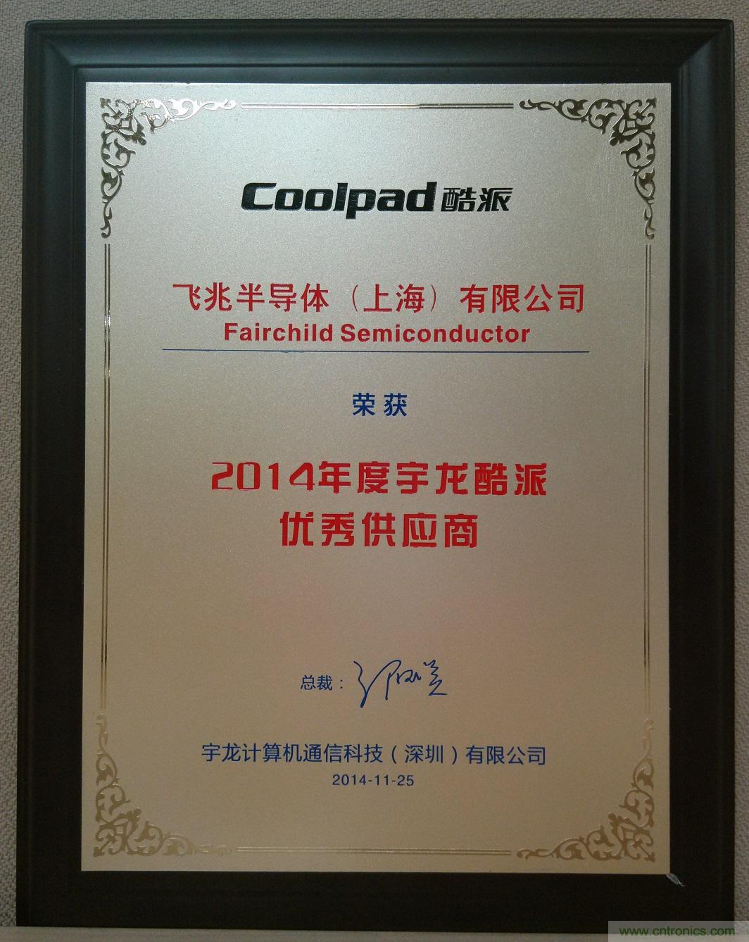 最佳供應(yīng)商獎(jiǎng)旨在表彰Fairchild為宇龍酷派品牌提供一流產(chǎn)品、杰出服務(wù)和強(qiáng)大的技術(shù)支持。宇龍酷派品牌是中國(guó)領(lǐng)先的智能手機(jī)之一。Fairchild的準(zhǔn)時(shí)交貨為 2014 上半年宇龍大舉進(jìn)軍 4G LTE 智能手機(jī)市場(chǎng)提供了大力支持。