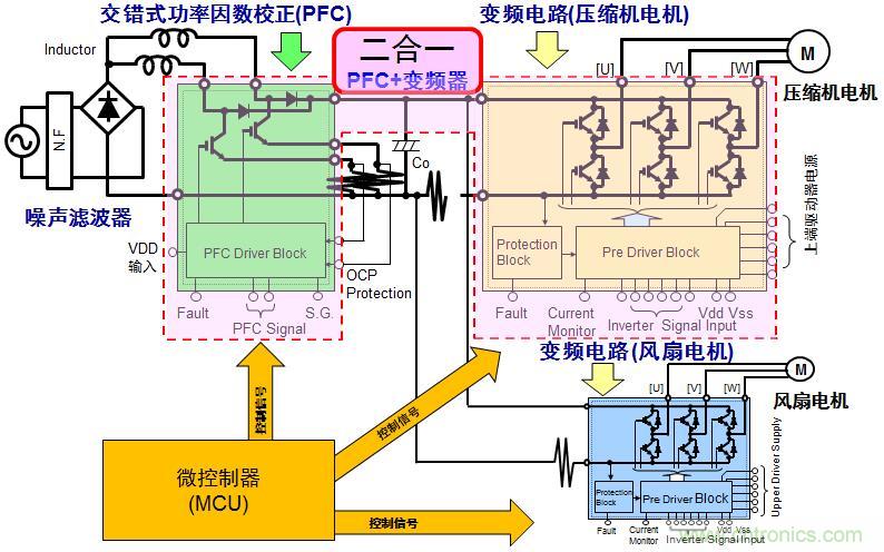 集成PFC及3相逆變的二合一IPM應用于變頻空調