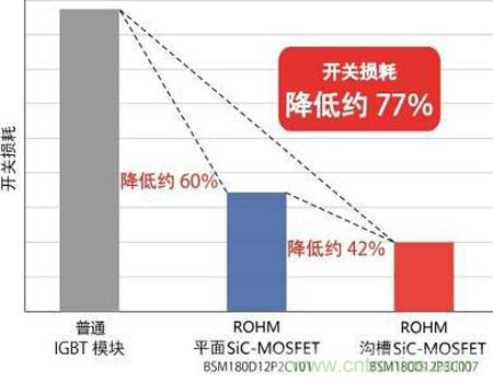 圖4. ROHM新產(chǎn)品與普通IGBT模塊的損耗比較