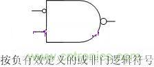 上述圖中畫的邏輯器件符號均是正邏輯下的輸入、輸出關系,即對“1”(高電平)有效而言。而單片機中的多數控制信號是按照負有效(低電平有效)定義的。例如片選信號CS(Chip Select),指該信號為“0”時具有字符標明的意義,即該信號為“0”表示該芯片被選中。因此,“或非”門的邏輯符號也可以畫成下圖。
