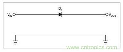 圖1一只串聯(lián)二極管保護(hù)系統(tǒng)不受反向極性影響,二極管有0.7V的壓降。