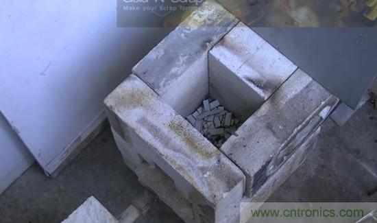 ▼ 先把電路芯片放入這個用磚頭砌成的冶煉器中