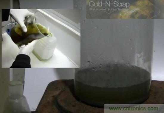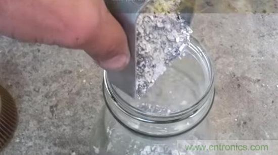 ▼ 冷卻過后將這些電路芯片灰倒入玻璃瓶里