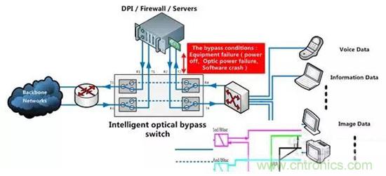 OBP旁路保護(hù)系統(tǒng): 光旁路保護(hù)系統(tǒng)(Optical Bypass Protection system)是一種應(yīng)用于光纖通信領(lǐng)域并能自動(dòng)繞過(guò)故障網(wǎng)絡(luò)節(jié)點(diǎn)的智能光路切換系統(tǒng),能自動(dòng)識(shí)別網(wǎng)絡(luò)節(jié)點(diǎn)供電狀態(tài)及光信號(hào)輸出狀態(tài),當(dāng)本地光設(shè)備出現(xiàn)故障(包括電源中斷、硬件或軟件故障等)后,能夠瞬間切換到旁通光路,通訊線路將繞過(guò)本地設(shè)備(即故障節(jié)點(diǎn)),從而能避免由于該故障節(jié)點(diǎn)而發(fā)生全阻障礙,保證系統(tǒng)連通正常。