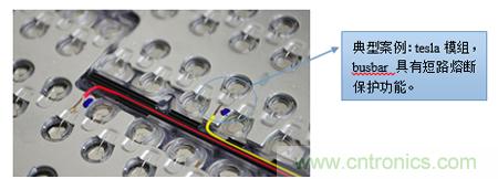另外一種是電芯外部增加fuse的設計方案,比如在模組的busbar上設計薄弱的過流界面。模組短路時,busbar會熔斷,從而起到短路斷開功能。這樣設計有一個優點:短路斷開時,電芯不會有反向電壓。同樣的,在pack系統中,該反向電壓會比較高,busbar熔斷常伴隨著拉弧等安全問題。