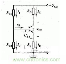設流過基極偏置電阻的電流IR》》IB,因此可以認為基極電位VB只取決于分壓電阻、,VB與三極管參數無關,不受溫度影響。