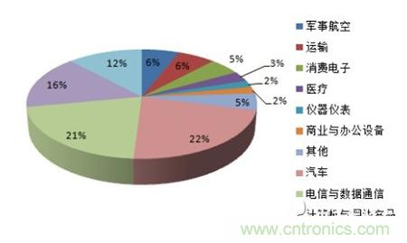 中國連接器市場已經(jīng)占據(jù)全球30%左右連接器市場,但是我國連接器還主要以中低端為主,高端連接器占比較低,從全球來看,汽車連接器是最大應用市場。根據(jù)統(tǒng)計,汽車市場應用是全球連接器最大的應用市長,占比達到 22.2%。其次是電信與數(shù)據(jù)通信,約有 21%,另外計算機與工業(yè)分別占比達到 16%、12%。
