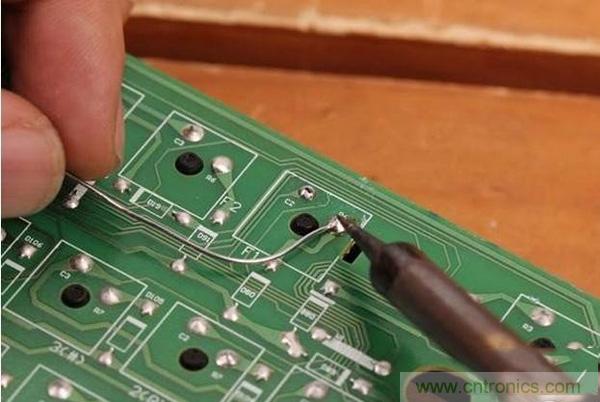 以上所說其實都是電子元器件的問題,當然,既然PCB電路板作為元器件的落腳點,那么電路板故障肯定也是存在的,最簡單的例子就死鍍錫部位,因制作工藝原因,在PCB腐蝕過程中,有可能會出現斷線問題。遇到這種情況,如果無法補線,那么只能用細銅絲飛線解決。