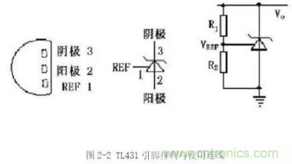 TL431是由德州儀器生產的可控精密穩壓源,實物如圖2-3所示。它的輸出電壓用兩個電阻就可以任意的設置到從2.5V到36V范圍內的任何值。該器件的典型動態阻抗為0.2Ω,在很多應用中用它代替穩壓二極管,例如,數字電壓表,運放電路,可調壓電源,開關電源等。圖2-2所示為TL431引腳排列與使用連線圖。