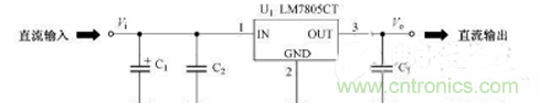 下面來一個具體案例來分析電容在穩壓電路中的作用: