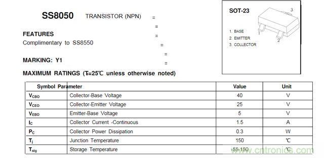 (1)我們先來看下SS8050的幾個基本參數