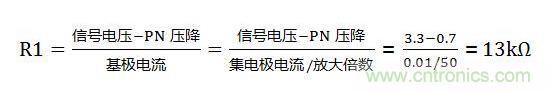 注解:13K為計算出來的最小電阻值,但為了三極管可靠地進入飽和狀態,我們取值盡可能比13K要小點。取5.1K,畢竟此時流入基極的電流13K或5.1K都非常小了,對損耗功率可以幾乎不計,因此保險起見取小點電阻值也無防。