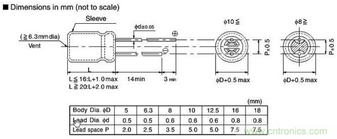 下圖是電解電容和固態電容圖,這類電容都是標準的封裝,但是高度不一定標準,包括很多定制的電容,需根據產品設計特點進行選擇。圖中灰白色的那種就是,很 多主板上經常吹噓的所謂的固態電容,固態電容穩定性要稍好一點。