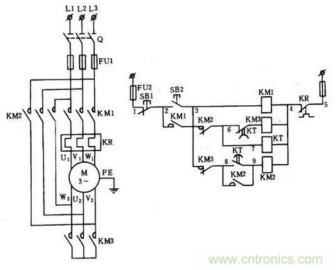 【例1】1-為電動機Y/△減壓起動控制主電路和電氣控制的原理圖。