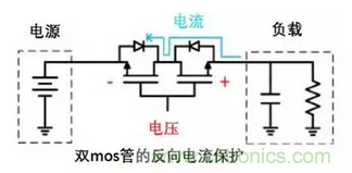 如下圖所示,這是使用2個MOS管串聯的方法。在MOS管關閉時,可以阻止從兩個方向上來的電流。 MOS管的壓降低于二極管解決方案,但這種方法的缺點是需要占用更多的電路板空間。