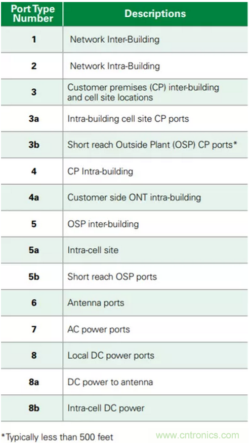 在美國,電信公司在網(wǎng)絡(luò)側(cè)安裝設(shè)備的電路保護(hù)(例如,安裝光纖網(wǎng)絡(luò)終端單元或ONT的附近機(jī)柜中)必須符合NEBS(網(wǎng)路設(shè)備建設(shè)系統(tǒng))設(shè)計(jì)指南,這反過來可能需要符合GR-1089第6期端口類型3浪涌。由于這些回路很短,端口類型可被指定為類型3a / 5a。每個(gè)供應(yīng)商應(yīng)界定其自身的防雷電要求。端口類型3是這類設(shè)備中的最嚴(yán)重情況。欲了解有關(guān)端口類型的更多信息,請(qǐng)參見表2。