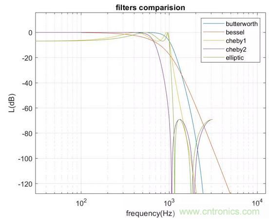 雖然在通帶和阻帶內(nèi)都沒有波動(dòng),但是保留通帶信號(hào)的能力以及過渡帶衰減速度都沒有巴特沃斯卓越;