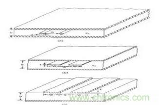 圖3:差分對線模型b:帶狀線 c: 微帶線