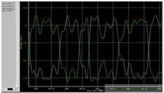 通過差分對IN,OUT的HSPICE仿真,圖6顯示的結果:差分對線的對稱良好。