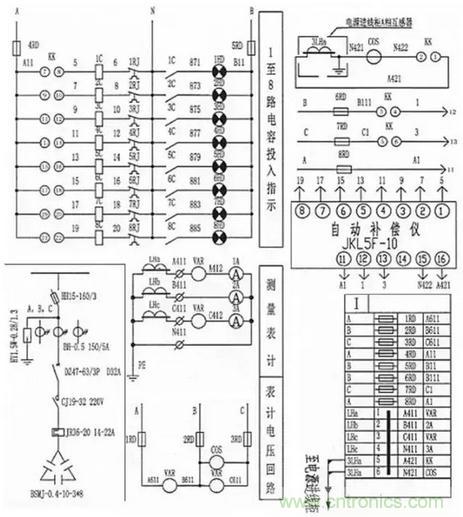 合上刀熔開關和斷路器,無功功率補償控制器根據進線柜電壓和電流的相位差輸出控制信號,控制交流接觸器閉合和斷開,從而控制電容器投入和退出。
