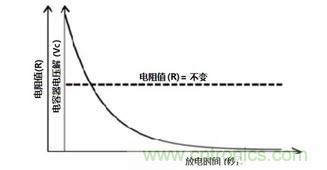 圖5:電阻值不變時放電時間與電容器電壓降關(guān)系圖