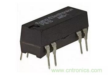 舉例來(lái)說(shuō),TE Connectivity的JWD-171-10磁簧繼電器有一個(gè)集成吸收器二極管的24V線圈,以及一個(gè)常開(kāi)觸頭,其在20V時(shí)的額定最大切換電流為500mA。JWD系列磁簧繼電器設(shè)計(jì)安裝在電路板上,基底面與14引腳DIP集成電路相同,不過(guò)只有8個(gè)引腳(圖1)。