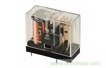 圖2:Omron Electronic的印刷電路板安裝式G2R-1-DC24通用繼電器在24V時(shí)的額定切換電流為10A。(圖片來(lái)源:Omron Electronics)