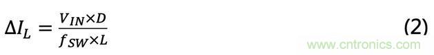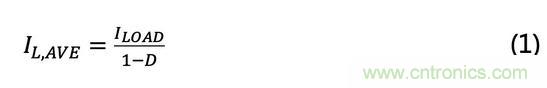 電感值的選擇很重要,因為它決定了電感上的電流紋波,從而決定了輸出端的電壓紋波。根據圖1,平均電感電流IL,AVE由下式給出。