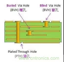 這個制作過程不能通過電路板黏合后再進(jìn)行鉆孔的方式達(dá)成,必須要在個別電路層的時候就進(jìn)行鉆孔操作,先局部黏合內(nèi)層之后進(jìn)行電鍍處理,最后全部黏合。由于操作過程比原來的導(dǎo)通孔和盲孔更費勁,所以價格也是最貴的。這個制作過程通常只用于高密度的電路板,增加其他電路層的空間利用率。