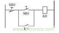 I/O分配SB0-X0,SB1-X1,輸出K0-Y0。當(dāng)外部使用長(zhǎng)閉觸點(diǎn),不操作該按鈕,輸出Y0正常接通,在PLC控制系統(tǒng)中,外部開(kāi)關(guān)無(wú)論是啟動(dòng)還是停止一般都選用常開(kāi)型。