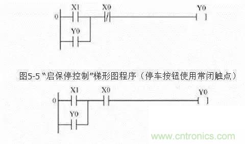 輸入端的電氣原理圖中停止按鈕SB0用常閉觸點(diǎn),串在控制線中,用于停機(jī)控制。 啟動(dòng)按鈕SB1用常開(kāi)觸點(diǎn)。在設(shè)計(jì)的兩個(gè)梯形圖完成的控制功能相同,但停機(jī)信號(hào)X0使用的觸點(diǎn)類(lèi)型不同,那么連接在端點(diǎn)的外部停機(jī)按鈕觸點(diǎn)類(lèi)型也就不同