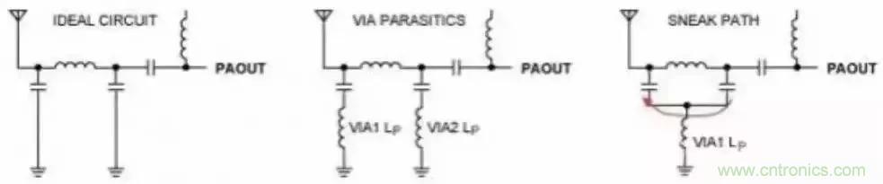 應遵循原則:確保對敏感區域的過孔電感建模;濾波器或匹配網絡采用獨立過孔;較薄的PCB覆銅會降低過孔寄生電感的影響。