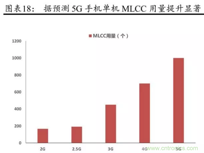 根據中國電子元件行業協會信息中心的數據,2017 年中國 MLCC 產量為24,740億只,同比增長 16.5%,銷量為 24,840 億只,同比增長16.8%,出口 量為 13,830 億只,同比增長3.0%;曾預計 2018 年中國 MLCC 銷量 將達 28,570億只,到 2022 年將達 37,070 億只。