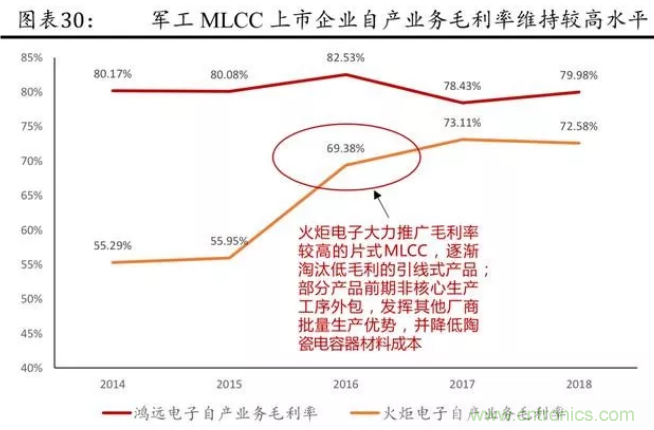 軍工 MLCC 上市企業自產自銷業務的毛利率有望維持較高水平。