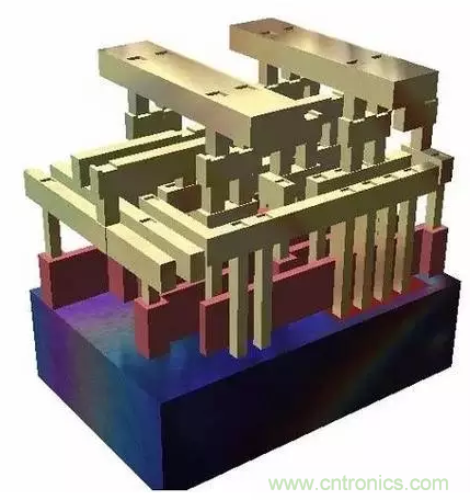 在開始前,我們要先認(rèn)識 IC 芯片是什么。IC,全名積體電路(Integrated Circuit),由它的命名可知它是將設(shè)計好的電路,以堆疊的方式組合起來。藉由這個方法,我們可以減少連接電路時所需耗費的面積。下圖為 IC 電路的 3D 圖,從圖中可以看出它的結(jié)構(gòu)就像房子的樑和柱,一層一層堆疊,這也就是為何會將 IC 制造比擬成蓋房子。
