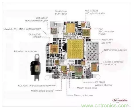 采用 SiP 技術(shù)的產(chǎn)品,最著名的非 Apple Watch 莫屬。因為 Watch 的內(nèi)部空間太小,它無法采用傳統(tǒng)的技術(shù),SoC 的設(shè)計成本又太高,SiP 成了首要之選。藉由 SiP 技術(shù),不單可縮小體積,還可拉近各個 IC 間的距離,成為可行的折衷方案。下圖便是 Apple Watch 芯片的結(jié)構(gòu)圖,可以看到相當(dāng)多的 IC 包含在其中。