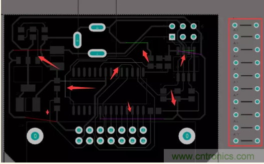 如下圖,這就是一個通過跳線設計器,來實現(xiàn)的路由在一邊的板。