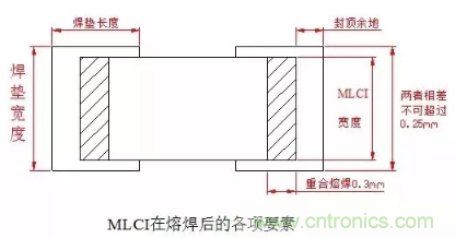 d.焊盤的本身寬度不宜太寬,其合理寬度和MLCI寬度相比,不宜超過0.25mm