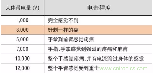 下面介紹了當人體帶電時帶電量與所感受到的電擊之間的大致關系。
