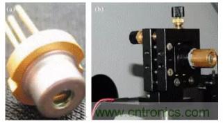 圖10 (a)半導體激光二極管;(b)裝配散熱銅柱及可調底座