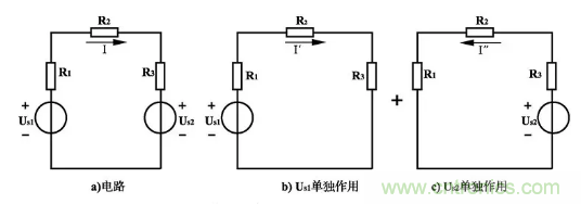 在線性電路中,所有獨立電源共同作用產生的響應(電壓或電流),等于各個電源單獨作用所產生的響應的疊加。