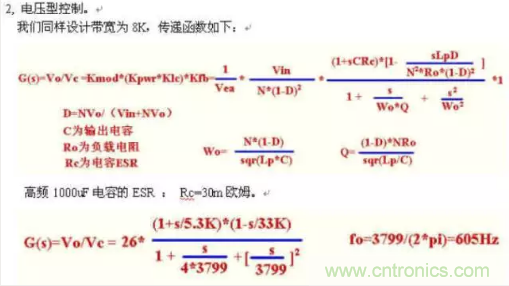 下面分電壓型和峰值電流型控制來(lái)設(shè)計(jì)此電源環(huán)路.所有設(shè)計(jì)取樣點(diǎn)在輸出小LC前面.如果取樣點(diǎn)在小LC后面,由于受LC諧振頻率限制,帶寬不能很高.1)電流型控制