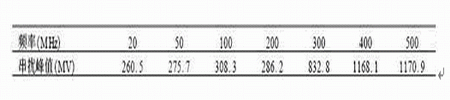 表2 干擾源頻率取不同值時(shí)的串?dāng)_峰值