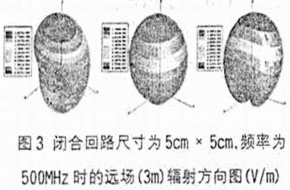 這是一種帶有接地平面的正方形的閉合印制線環路,在回路的兩端分別接有電壓源和阻抗相等的源內阻、負載,當電壓信號的頻率較高時,這種結構與方環形天線是非常相似的,成為一種嚴重的輻射源。