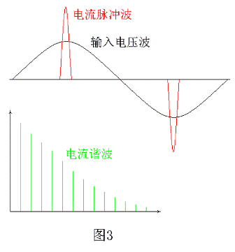 這種脈沖尖峰電流如用付立葉級數展開,將被看成由非常多的高次諧波電流組成,這些諧波電流將會降低電源設備的使用效率,即功率因數很低,并會倒灌到電網,對電網產生污染,嚴重時還會引起電網頻率的波動,即交流電源閃爍。脈沖電流諧波和交流電源閃爍測試標準為:IEC61000-3-2及IEC61000-3-3。一般測試脈沖電流諧波的上限是40 次諧波頻率。