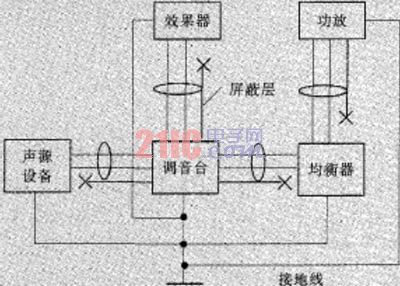 在音頻系統中,必須要求整個系統有良好的接地,接地電阻要4歐姆。否則音頻系統中設備由于各種輻射和電磁感應產生的感應電荷將不能夠流入大地,從而形成噪聲電壓疊加到音頻信號中。